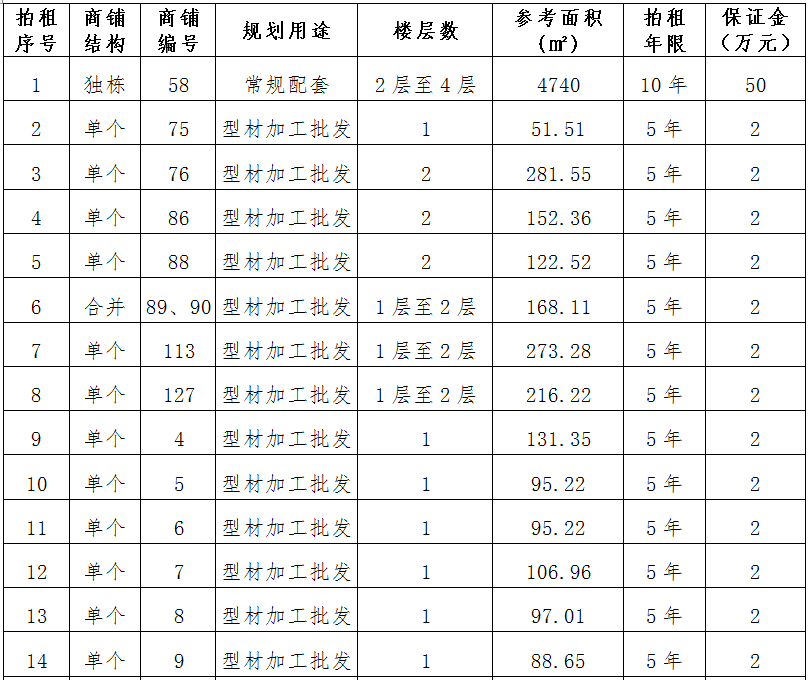 (一)拍租位于鎮(zhèn)雄縣南臺街道呢嚕坪安置點8間商鋪使用權(quán)。以間為單位拍租。詳見下表: