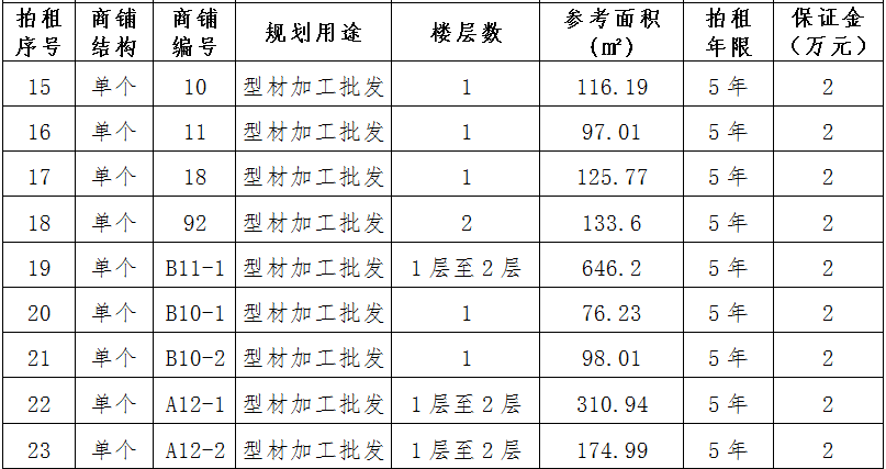 (三)拍租位于鎮(zhèn)雄縣舊府街道魯家院子安置點24間商鋪使用權(quán)。以間為單位拍租。詳見下表: